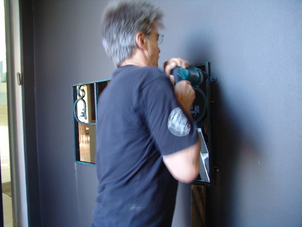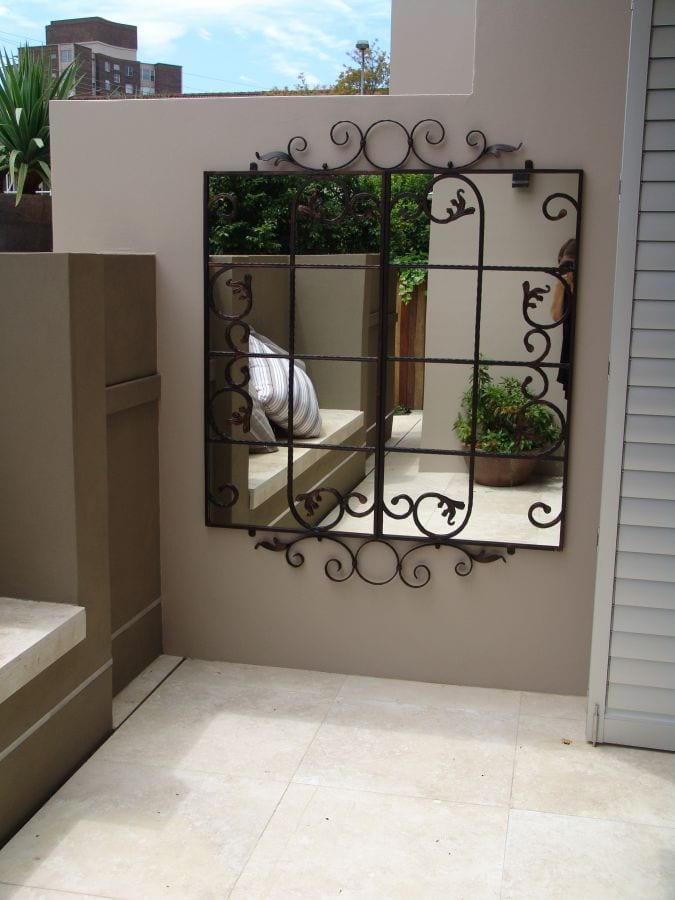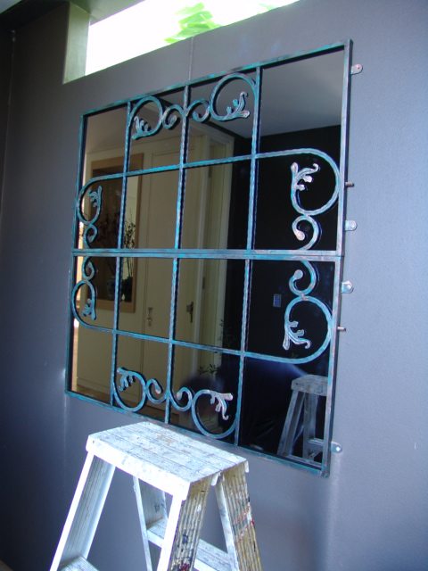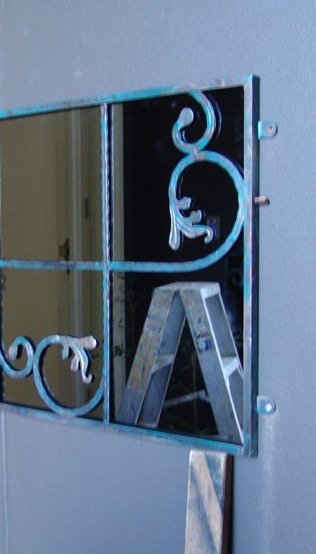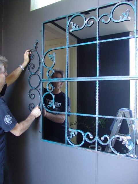 - If your wall isn’t level washers may need to be placed behind the tabs to create a plane surface. Keeping it level keeps the reflection perfect. Attach scrolls to the threads with the hex nut that’s on them.