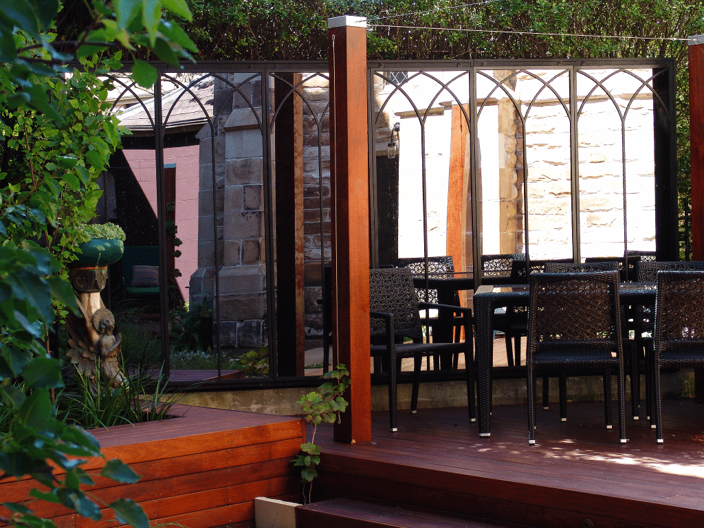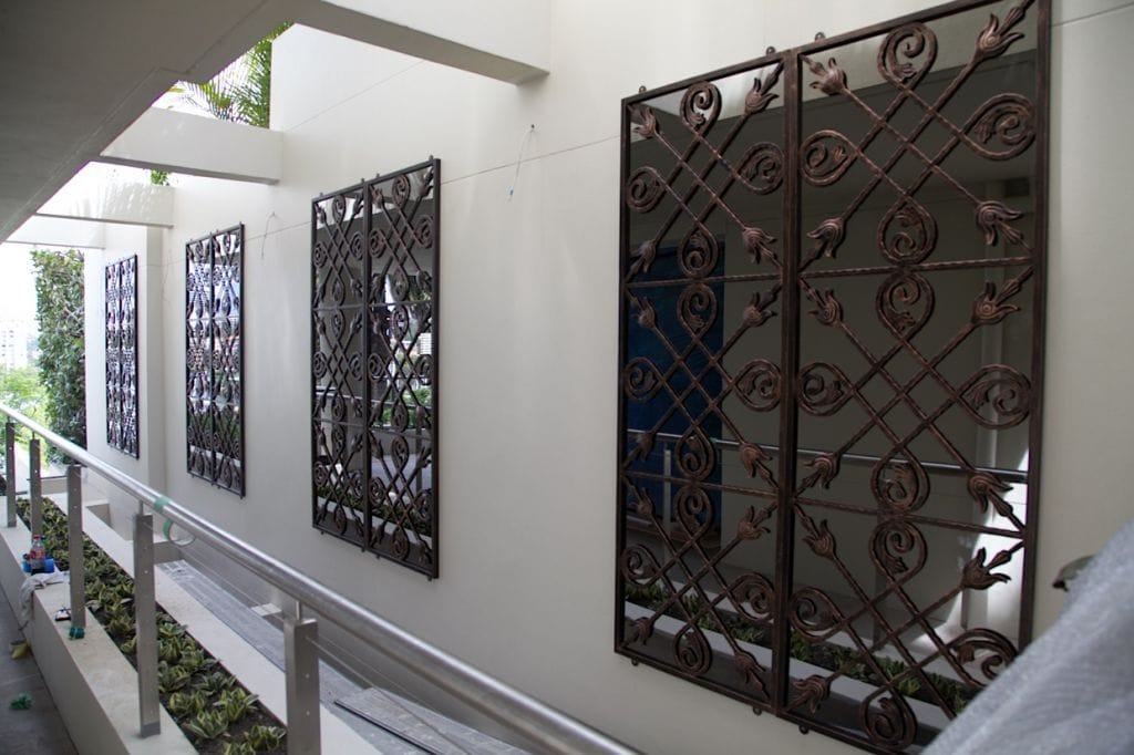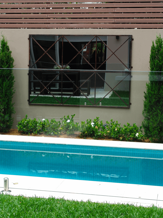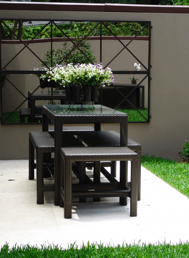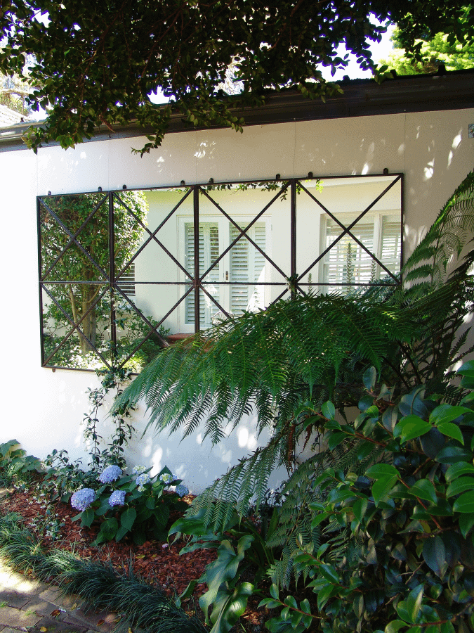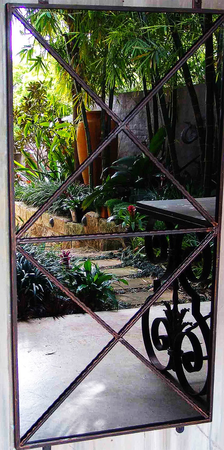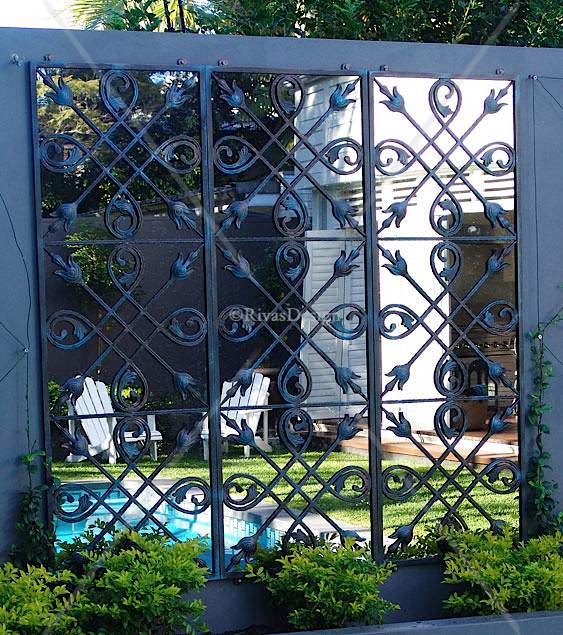 Both our Outdoor Mirrors and Trellises have pieces that can be repeated. You can repeat as many pieces as needed to fill a space horizontally or vertically. They are designed to stack perfectly along or up a wall.