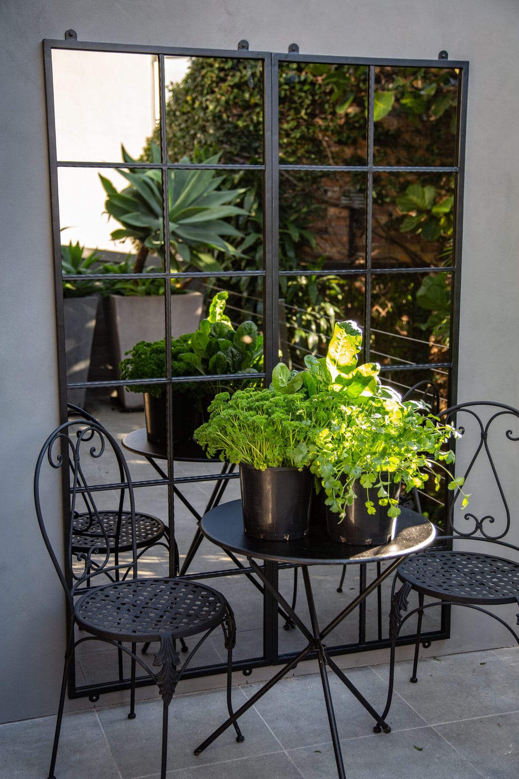 Let the mirror reflections guide your styling choices and see how easily your stylish outdoor space comes together.