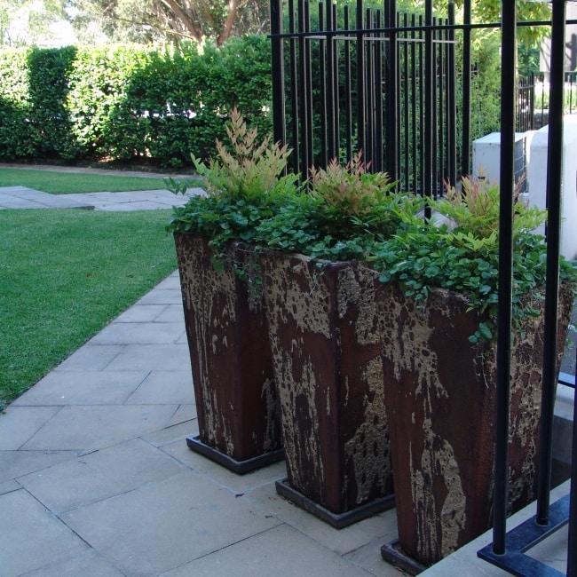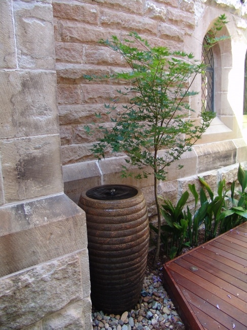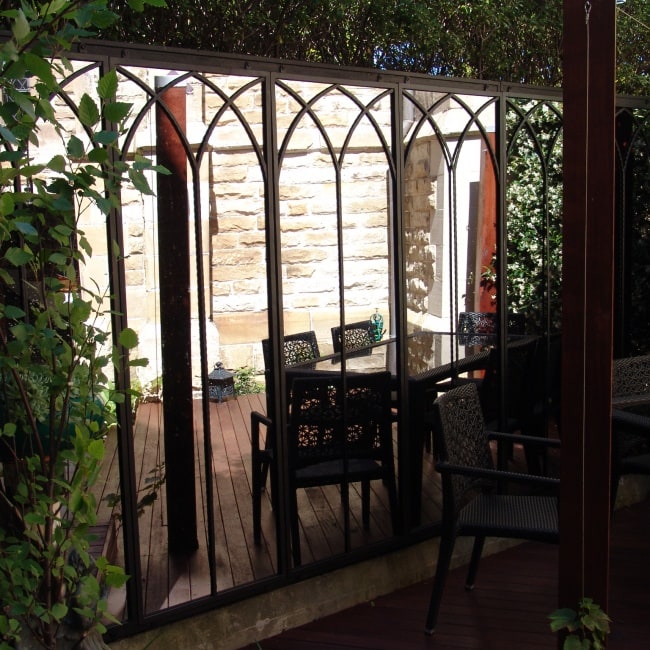 They ordered four of the mirrors — tall and elegantly shaped like an arched church window — and had a wall erected along the rear boundary of their small and irregular shaped courtyard to suit the size of the mirrors. When the wall was completed and the mirrors were hung side by side they ordered two more to fill more of the space.