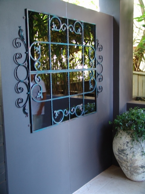 The client knew what she wanted so we needed to create the perfect shade of verdigris for her outdoor mirror.